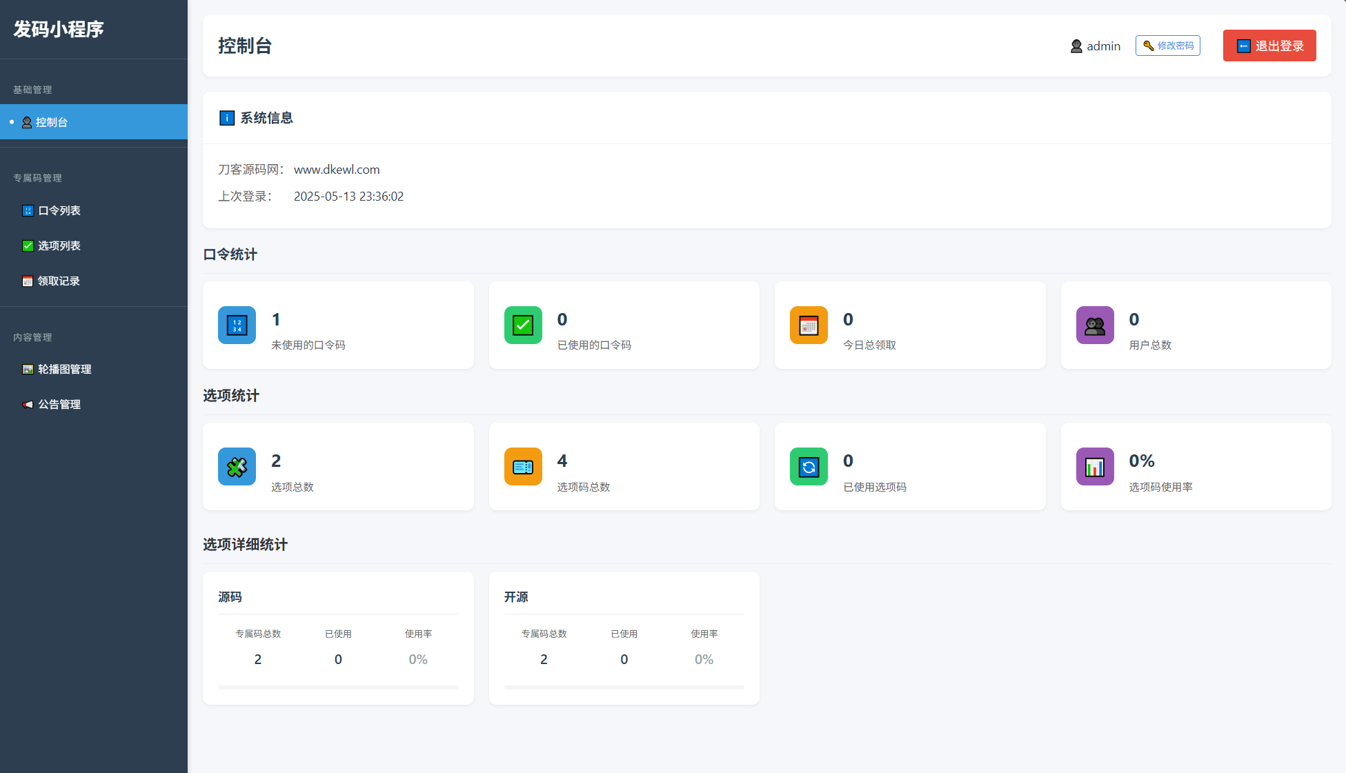自助发卡小程序系统/多种卡密领取模式/流量主