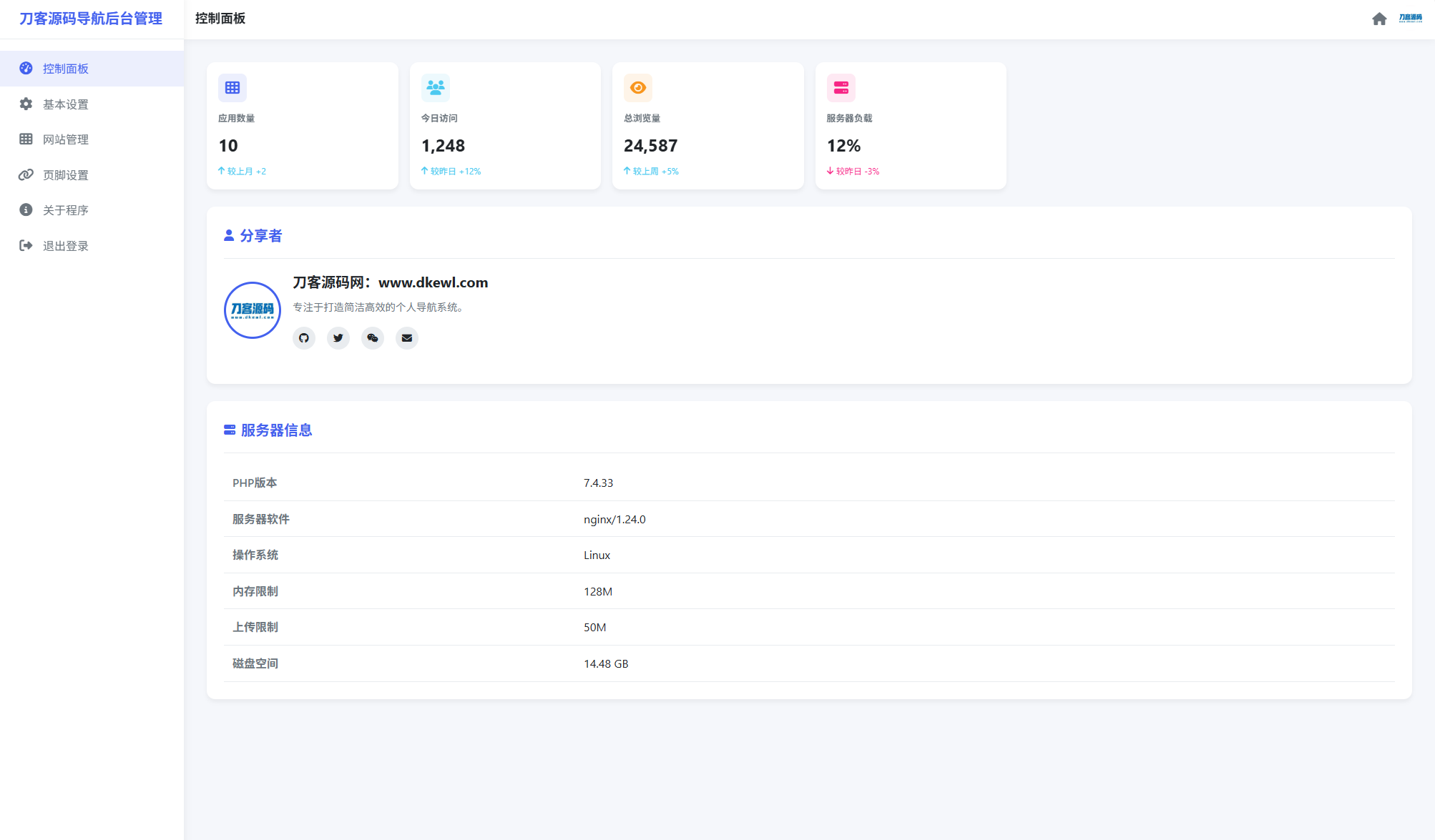 全新UI个人简洁网址导航源码 带后台