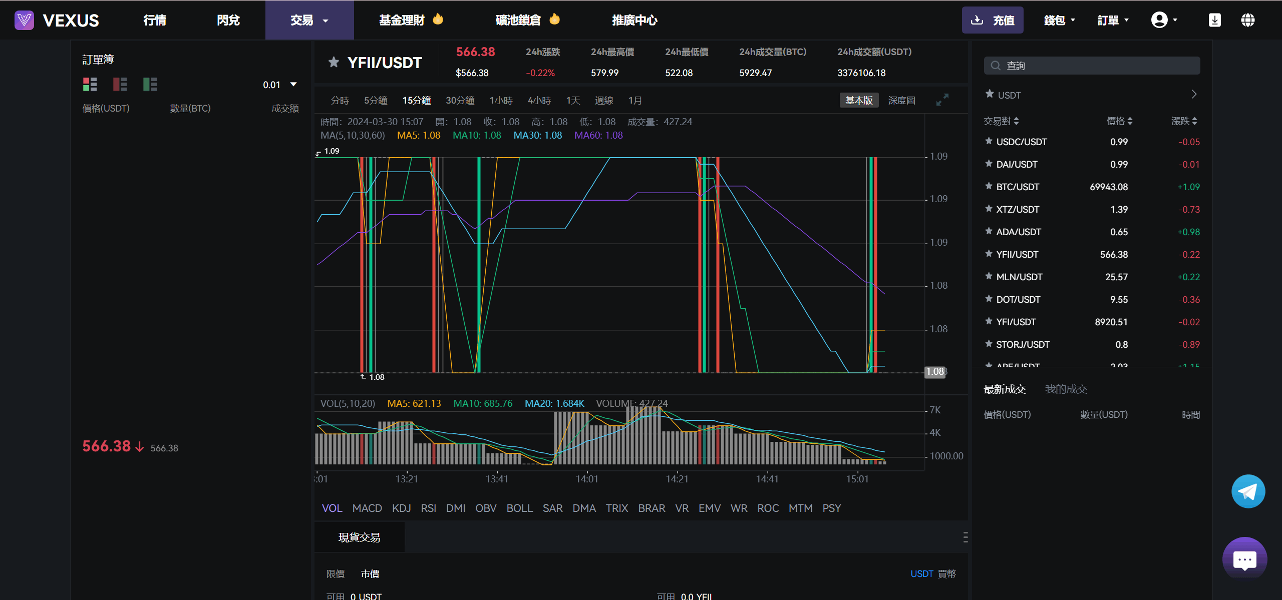 Vexus多语言虚拟货币交易所/Java交易所源码/模拟账户+现货交易+永续合约+交割合约+基金理财+锁仓挖矿+质押贷款+闪兑